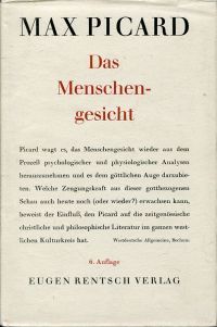 Picard, Max: Das Menschengesicht. 6. Aufl. Erlenbach-Zürich: Rentsch 1955. 8°. 250 S., 29 Bildtaf. Leinen (Schutzumschlag mit leichten Randläsuren und angestaubt; gut erhalten)