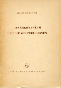 Schweitzer, Albert: Das Christentum und die Weltreligionen. 12.-15. Tsd. Bern: Haupt 1948. 8°. 58 S., broschiert (wenig Anstreichungen; Schnitt befleckt)