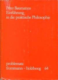Baumanns, Peter: Einführung in die praktische Philosophie. Stuttgart- Bad Cannstatt: Frommann-Holzboog 1977. 8°. 159 S., Bibliographie, Leinen Schutzumschlag mit leichten Randläsuren und leicht berieben; sonst gut erhalten) (=Problemata ; 64)