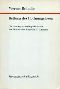 Brändle, Werner: Rettung des Hoffnungslosen. Die theologischen Implikationen der Philosophie Theodor W. Adornos. Göttingen: Vandenhoeck und Ruprecht 1984. 8°. 332 S. broschiert (Einband leicht berieben; gut erhalten) (=Forschungen zur systematischen und ökumenischen Theologie ; Bd. 47)