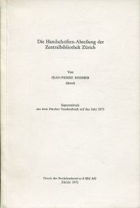 Bodmer, Jean-Pierre: Die Handschriften-Abteilung der Zentralbibliothek Zürich. Zürich: Zentralbibliothek 1972. 8°. S. 84-113, 3 Taf. Broschiert (gut erhalten) (=Separatdruck aus: Zürcher Taschenbuch. 1973)