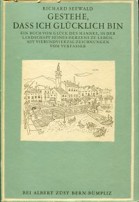 Seewald, Richard: „Gestehe dass ich glücklich bin“. Das Buch vom Glück des Mannes, in der Landschaft seines Herzens zu leben. (2.Aufl.). Bern-Bümpliz: Albert Züst um 1948. 8°. 152 S., 44 Illustrationen, gebunden (Schutzumschlag mit Randläsuren; sonst gut erhalten)