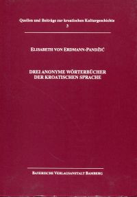 Erdmann, Elisabeth von (Hrsg.): Drei anonyme Wörterbücher der kroatischen Sprache aus Dubronvik, Perugia und Oxford. Zur Sammlung der ‚disiecta membra‘ des frühen Opus von Bartol Kasic. Bamberg: Fach Slavische Philologie Universität Bamberg/Bayerische Verlagsanstalt [in Komm.], 1990. 8°. 86 S., sw-Abbildungen, Bibliographie, Quellen, broschiert (gut erhalten) (=Quellen und Beiträge zur kroatischen Kulturgeschichte; 3)