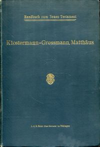 Klostermann, Erich/ Gressmann, Hugo: Die Evangelien 1: Matthäus. Tübingen: J. C. B. Mohr (Paul Siebeck) 1909. gr.-8°. 613 S. gebunden (=Handbuch zum Neuen Testament; II,1)