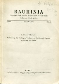 Huber-Morath, A.: Verbreitung der Gattungen Verbascum, Celsia und Staurophragma im Orient. Basel: Basler Botanische Gesellschaft 1955. Gr.-8°. 83 S., 34 Tafeln, broschiert (Stempel auf Titelblatt (=Bauhinia, Bd. 1, Heft 1, Dez. 1955). Aus dem Nachlass von Prof. Dr. Wilhelm Vischer (1890-1960), mit seiner Signatur auf Titelblatt und Umschlag.