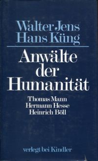 Jens, Walter/Küng, Hans: Anwälte der Humanität. Thomas Mann, Hermann Hesse, Heinrich Böll. München: Kindler 1989. 8°. 317 S., broschiert (Schutzumschlag leicht berieben; Papier leicht gebräunt; gut erhalten)