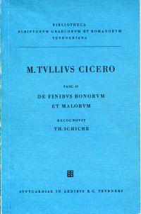 Cicero, Marcus Tullius: Scripta quae manserunt omnia. Fasc. 43: De finibus bonorum et malorum. Recogn. Th. Schiche. Ed. stereotypa ed. prioris (1915). Stutgardiae: Teubner 1976. 8°. XV, 215 S. broschiert (Besitzervermerk auf Vorsatz; wenig Anstreichungen)
