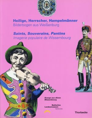 Siefert, Katharina (Hrsg.): Heilige, Herrscher, Hampelmänner. Bilderbogen aus Weissenburg. Sigmaringen: Thorbecke 1999. 4°. 264 S., 273 Farb- und sw-Abbildungen, Bibliographie, broschiert (gut erhalten) (=Volkskundliche Veröffentlichungen des Badischen Landesmuseums Karlsruhe ; Bd. 5) Fast 100 Jahre lang lieferten die Druckerei Wentzel seit ihrer Gründung 1835 und ihre Nachfolger Burckardt und Ackermann vom elsässischen Weissenburg Bilderbogen in die ganze Welt. Die farbenfrohen Lithographien waren das Massenmedium des 19. Jahrhunderts: Aktuelle Ereignisse, Genredarstellungen, Heiligenbilder, Fürstenporträts und für die Kinder Ausschneidebogen. Das bunte Spektrum der Bilderwelt aus Weissenburger Produktion wird in Aufsätzen zu verschiedenen Aspekten mit Farbabbildungen erläutert. Text deutsch u. französisch.