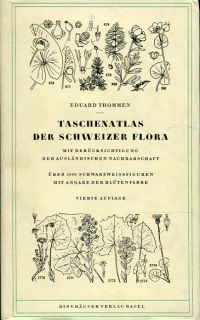 Thommen, Eduard: Taschenatlas der Schweizer Flora. Mit Berücksichtigung der ausländischen Nachbarschaft ; über 3000 Schwarzweissfiguren mit Angabe der Blütenfarbe. 4. Aufl. bearb. von Alfred Becherer. Basel: Birkhäuser 1967. 8°. XVI, 303 S., durchgehend Illustrationen, Leinen Schutzumschlag leicht angestaubt; sonst gut erhalten)