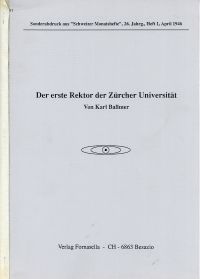 Ballmer, Karl: Der erste Rektor der Zürcher Universität. Besazio: Fornasella o.J. 4°. 47 S. in Kopie, geheftet (gut erhalten) (=Sonderabdruck aus „Schweizer Monatshefte“, 26 Jg., Heft /1946)