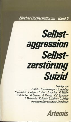 Braun, Hans-Jürgen (Hrsg.): Selbstaggression, Selbstzerstörung, Suizid. Zürich: Artemis 1985. 8°. 263 S., sw-Abbildungen, broschiert (Einband leicht angebräunt; gut erhalten) (=Zürcher Hochschulforum ; Bd. 6)