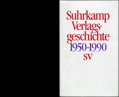 Geschichte des Suhrkamp-Verlages [Frankfurt am Main]. 1. Juli 1950 bis 30. Juni 1990. 1. Auflage. Frankfurt am Main: Suhrkamp 1990. 8°. 254 S., zahlreiche sw-Abbildungen, Leinen (Schutzumschlag hinten leicht befleckt; gut erhalten)