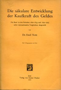 Notz, Emil: Die säkulare Entwicklung der Kaufkraft des Geldes. Für Basel in den Perioden 1800-1833 u. 1892-1923 nebst internationalen Vergleichen dargestellt. Jena: G. Fischer 1925. Gr.-8°. VIII, 283 S., 9 Diagramme im Text, broschiert (private Widmung des Verfassers auf Vorsatz; gut erhalten)
