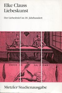 Clauss, Elke: Liebeskunst. Der Liebesbrief im 18. Jahrhundert. Stuttgart: Metzler 1993. 8°. 292 S., Bibliographie, broschiert (gut erhalten) (=Metzler Studienausgabe) Mit der Freisetzung von Individualität im 18. Jahrhundert verlangte die neu definierte Privatsphäre nach einem ihr gemässen Ausdruck. Die am höchsten individualisierte Form zwischenmenschlicher Beziehung ist die Liebe und der Liebesbrief. Verfolgt wird die schriftliche Form der Liebesäusserung und es wird nach der Möglichkeit des „unmittelbaren“ Diskurses von Intimität anhand der Texte von Klopstock, Lessing, Goethe und Kleist gefragt.