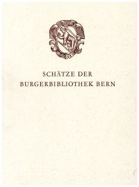 Schätze der Burgerbibliothek Bern. Hrsg. im Auftrag der burgerlichen Behörden der Stadt Bern anlässlich der 600-Jahr-Feier des Bundes der Stadt mit den Waldstätten. Bern: [H. Lang] 1953. Lex.-8°. 135 S., sw-Tafeln Leinen in Schuber (gut erhalten)