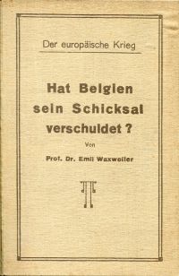 Waxweiler, Emil: Der europäische Krieg. Hat Belgien sein Schicksal verschuldet? Zürich: Orell Füssli 1915. 8°. VII, 276 S., 1 Schriftprobe auf Tafel, Leinen (Einband leicht stockfleckig; sonst altersgemäss gut erhalten)