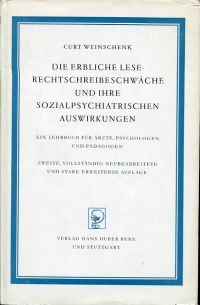 Weinschenk, Curt: Die erbliche Lese-Rechtschreibeschwäche und ihre sozial-psychiatrischen Auswirkungen. Ein Lehrbuch für Ärzte, Psychologen und Pädagogen. 2., neubearbeitete u. stark erweiterte Auflage. Bern/Stuttgart: Huber 1965. Gr.-8°. 216 S., Bibliographie, Leinen (Schutzumschlag leicht berieben und mit Randläsuren; leicht angestaubt; sonst gut erhalten)