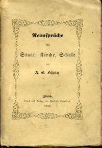 Fröhlich, A(braham) E(manuel): Reimsprüche aus Staat, Kirche, Schule. Zürich: Schulthess 1850. 8°. 299 S., broschiert (angestaubt; stockfleckig; letzte Seiten mit Eselsohren; Einband vom Buchblock gelöst)