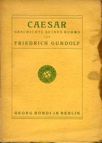 Gundolf, Friedrich: Caesar. Geschichte seines Ruhms. Berlin: G. Bondi 1924. Gr.-8°. 273 S., broschiert (Seiten teilweise unbeschnitten, teilweise unschön an den Seiten aufgeschnitten; erste Seiten am Rand befleckt; Einband angestaubt)
