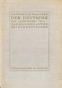 Wolters, Friedrich: Der Deutsche. Ein Lesewerk. 5 Teile. Breslau: Hirt 1925-1927. Gr.-8°. 159 S., Leinen (Besitzervermerk auf Vorsatz; Ex Libris auf Innendeckel; angebräunt; altersgemäss gut erhalten) Teil I: Das Bild der Antike bei den Deutschen – Teil II: Sicht in Vorzeit und Mittelalter – Teil III: Die Neuzeit im deutschen Berich – Teil IV: Die Gestalt des Deutschen – Teil V: Erde, Gewächs und Weltall.