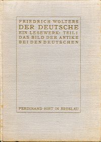 Wolters, Friedrich: Der Deutsche. Ein Lesewerk. Teil I: Das Bild der Antike bei den Deutschen. Breslau: Hirt 1925. Gr.-8°. 223 S., Leinen (Einband und Schnitt leicht stockfleckig; Bibliotheksexemplar; Stempel auf Titelblatt; sonst gut erhalten)