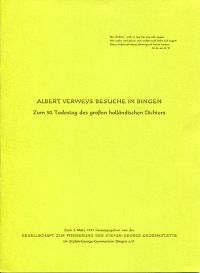 Wolff, Robert: Albert Verweys Besuche in Bingen. Zum 50. Todestag des grossen holländischen Dichters am 8.3.1987. Bingen: Gesellschaft zur Förderung der Stefan-George-Gedenkstätte 1987. 8°. 4 S., 1 Farbabbildung, geheftet (gut erhalten) (=Sonderdruck aus: Heimatjahrbuch des Landkreises Mainz-Bingen 1987)