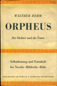 Rehm, Walther: Orpheus. Der Dichter und die Toten. Selbstdeutung und Totenkult bei Novalis, Hölderlin, Rilke. Düsseldorf: Schwann 1950. 8°. 704 S., Leinen (Besitzervermerk auf Vorsatz; Ex Libris auf Innendeckel; Papier altersbedingt leicht gebräunt; folienkaschierter Schutzumschlag; sonst gut erhalten)