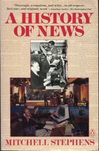 Stephens, Mitchell: A history of news. From the drum to the satellite. New York: Penguin Books 1989. 8°. XI, 401 S., sw-Abbildungen, broschiert (Besitzervermerk auf Innendeckel; Einband mit leichten Gebrauchsspuren; Papier altersbedingt leicht gebräunt; sonst gut erhalten)