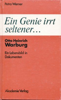 Werner, Petra (Hrsg.) Ein Genie irrt seltener … Otto Heinrich Warburg. Ein Lebensbild in Dokumenten. Berlin: Akademie 1991. 8°. 476 S., zahlreiche sw-Abbildungen, Pappband (Kanten und Einband leicht berieben; sonst gut erhalten) 157 Dokumente gegen Einblick in Leben und Arbeitsmethoden Otto H. Warburgs. Auskünfte gibt das Buch auch über seine Zusammenarbeit mit der chemischen Industrie. Es belegt die Föderung deutscher Wissenschaft durch die Rockefeller-Foundation und bringt neue Einzelheiten über die Requirierung des Instituts durch die Rote Armee und seinen Neuaufbau in die Diskussion.