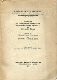Wardakis, Themistokles: Kriegsverwahrlosung. Versuch einer Erklärung des Phänomens auf der Basis der heilpädagogischen Psychologie von Prof.P. Moor. Athen: Andreas Sideris 1957. Gr.-8°. 139 S. Brosch. (Einband teilweise abgeblasst; bestossen; kleiner Einriss) (=Dissertation Universität Zürich, Philosophische Fakultät I (1957)