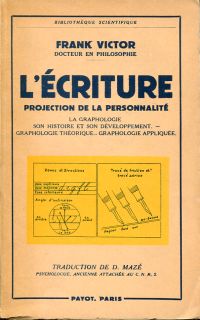 Victor, Frank: L’écriture. Projection de la personnalité. Français par D. Mazé. Paris: Payot 1956. Gr.-8°. 184 S., zahlreich Schriftproben auf 13 Seiten. broschiert (Besitzervermerk auf Vorsatz; gut erhalten) (=Bibliothèque scientifique).