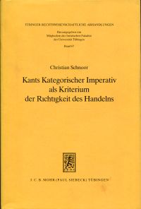 Schnoor, Christian: Kants kategorischer Imperativ als Kriterium der Richtigkeit des Handelns. Tübingen: Mohr 1989. 8°. X, 344 S., Leinen (gut erhalten) (=Tübinger rechtswissenschaftliche Abhandlungen ; Bd. 67)