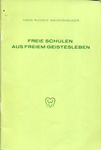 Niederhäuser, Hans Rudolf: Freie Schulen aus freiem Geistesleben. Ideal und Erfahrung. Stuttgart: Heidehof-Buchhandlung 1974. 8°. 64 S., geheftet (Besitzervermerk auf Vorsatz; leichte Gebrauchsspuren)