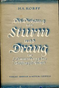 Korff, Hermann August: Die Dichtung von Sturm und Drang im Zusammenhange der Geistesgeschichte. Ein gemeinverständlicher Vortragszyklus. Leipzig: Quelle & Meyer 1928. 8°. V, 98 S., Leinen (Schutzumschlag mit Randläsuren; sonst altersgemäss gut erhalten)