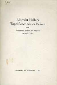Haller, Albrecht: Albrecht Hallers Tagebücher seiner Reisen nach Deutschland, Holland und England (1723-1727). St. Gallen: Hausmann 1948. Gr.-8°. XVII, 131 S., sw-Abbildungen auf Tafeln, broschiert (Umschlag angestaubt; sonst gut erhalten)