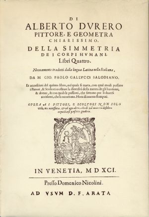 ![]() Durero, Della simmetria de i corpi humani, libri quattro ; Et accresciuti del qu (Umschlag) |