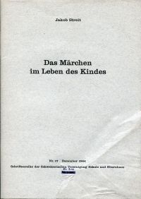 Streit, Jakob: Das Märchen im Leben des Kindes. Meiringen: Verlag der Kunstanstalt Brügger 1964. 8°. 53 S., geheftet (Einband mit leichten Gebrauchsspuren; angestaubt; sonst gut erhalten) (=Schriftenreihe der Schweizerischen Vereinigung Schule und Elternhaus, Nr. 17).