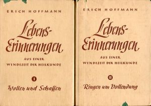 Hoffmann, Erich: Wollen und Schaffen. Lebenserinnerungen aus einer Wendezeit der Heilkunde, 1868-1932, 1933-1946. 2 Bände. Hannover: Schmorl & von Seefeld Nachfolger 1948-1949. 8°. 403; 309 S., 3 Abbildungen Halbleinen (Einbände wenig beschabt; Schutzumschlag mit Fehlstellen ohne Textverlust; Papier gebräunt; sonst altersgemäss gut erhalten)