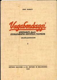 Donati, Ugo: Vagabondaggi. Contributi alla stroriografia artistica ticinese, Vol. 1. Bellinzona: Salvioni 1939. Gr.-8°. 360 S., 68 Abbildungen, broschiert (teilweise leicht stockfleckig; Rücken mit leichten Knickspuren; sonst altersgemäss gut erhalten)