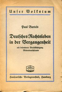 Bartels, Paul: Deutsches Rechtsleben in der Vergangenheit mit besonderer Berücksichtigung Niederdeutschlands. Hamburg: Hanseatische Verlagsanstalt 1924. Gr.-8°. 56 S., broschiert (Umschlag mit leichten Randläsuren; sonst altersgemäss gut erhalten) (=Unser Volkstum) Text in Fraktur.