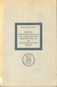 Pfeifer, Helfried: Rechts-Vereinheitlichung und Verwaltungs-Vereinfachung im grossdeutschen Reich. Hamburg: Hanseatische Verlags-Anstalt 1942. Gr.-8°. 99 S., broschiert Bibliotheksexemplar; wenige Bibliotheksvermerke; altersgemäss gut erhalten) (=Idee und Ordnung des Reiches)
