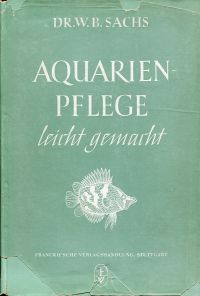 Sachs, Walter Bernhard: Aquarienpflege leicht gemacht. Eine Anleitung zur Einrichtung und Pflege von Warm- und Kaltwasser-Aquarien, sowie Angaben über die geeignetsten Fischarten, ihre Behandlung und Zucht. 14.-18. Tsd. Stuttgart: Franckh 1950. Gr.-8°. 87 S., 56 Abbildungen, Kart. (SU lädiert; Papier leicht gebräunt)