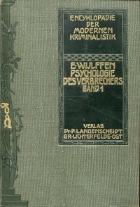 Wulffen, Erich: Psychologie des Verbrechers. Ein Handbuch für Juristen, Ärzte, Pädagogen und Gebildete aller Stände. Mischauflagen (Band 1: 2. Auflage) 2 Bände. Berlin: Langenscheidt 1913. Lex.-8°. XXVII, 2 Bll., 448; 6 Bll., 546 S., Illustrationen, Leinen mit geprägtem Einbandschmuck, goldgeprägter Schrift und umlaufendem Farbschnitt (Band 1) und Kopffarbschnitt (Band 2) (Bibliotheksexemplar; Stempel auf Titelblatt; sonst altersgemäss gut erhalten) (=Enzyklopädie der modernen Kriminalistik; I/II)