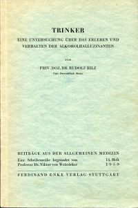 Bilz, Rudolf: Trinker. Eine Untersuchung über das Erleben und Verhalten des Alkoholhalluzinanten. Aus der Universitäts-Nervenklinik Mainz. Stuttgart: Enke 1959. Gr.-8°. VI, 196 S., Bibliographie, Register, broschiert (Einband teilweise abgeblasst, gut erhalten) (=Beiträge aus der allgemeinen Medizin ; H. 14)