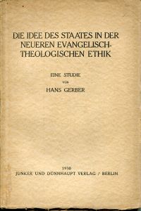 Gerber, Hans: Die Idee des Staates in der neueren evangelisch-theologischen Ethik. Eine Studie. Berlin: Junker und Dünnhaupt 1930. Gr.-8°. 92 S., broschiert (Umschlag angestaubt; altersgemäss gut erhalten)