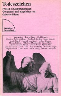 Dietze, Gabriele [Hrsg.]: Todeszeichen. Freitod in Selbstzeugnissen. Darmstadt/Neuwied: Luchterhand 1981. 8°. 143 S., Anmerkungen, broschiert (angebräunt; gut erhalten) (=Sammlung Luchterhand ; 329)