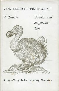 Ziswiler, Vinzenz: Bedrohte und ausgerottete Tiere. Eine Biologie des Aussterbens und des Überlebens. 1. – 6. Tsd. Berlin: Springer 1965. 8°. X, 134 S., 74 Abbildungen, Leinen Stempel auf Vorsatz und Vortitel; sonst gut erhalten) (=Verständliche Wissenschaft, 86)