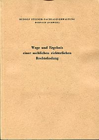 Wege und Ergebnis einer sachlichen richterlichen Rechtsfindung. Dornach: Rudolf-Steiner-Nachlassverwaltung 1953. 8°. 43 S., broschiert (Ex Libris auf Innendeckel; gut erhalten) (=Nachrichten der Rudolf-Steiner-Nachlassverwaltung; 5, Sonderheft)