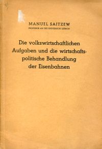 Saitzew, Manuel: Die volkswirtschaftlichen Aufgaben und die wirtschaftspolitische Behandlung der Eisenbahnen. Ein Beitrag zur Beurteilung des Wettbewerbes zwischen Eisenbahn und Automobil. Bern: Verlag Librairie-Ed. 1932. Gr.-8°. 92 S., broschiert (Umschlag angestaubt; sonst gut erhalten)