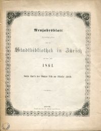 ![]() Neujahrsblatt herausgegeben von der Stadtbibliothek in Zürich auf das Jahr 1861. (Umschlag) |